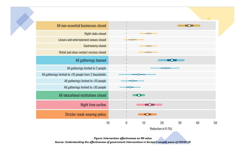 నిర్వహించిన అధ్యయనం ప్రకారం రాత్రి కర్ఫ్యూలు R0 లేదా పునరుత్పత్తి సంఖ్యపై సానుకూల ప్రభావాన్ని చూపుతాయి. ఈ సంఖ్య సోకిన వ్యక్తి సగటున ఎంత మందికి సోకిందో సూచిస్తుంది. రాత్రిపూట కర్ఫ్యూలు R0 విలువను 13 శాతం వరకు తగ్గించగలవని అధ్యయనం చెబుతోంది. అధ్యయనం కోసం ఉపయోగించిన డేటా యూరప్లోని బహుళ దేశాల నుండి పొందబడింది, అవి ఆస్ట్రియా, చెక్ రిపబ్లిక్, ఇంగ్లాండ్, జర్మనీ, ఇటలీ, నెదర్లాండ్స్ మరియు స్విట్జర్లాండ్.